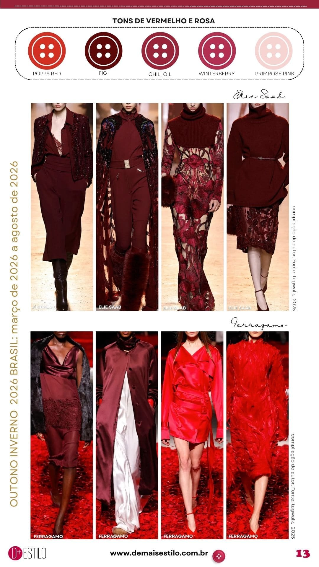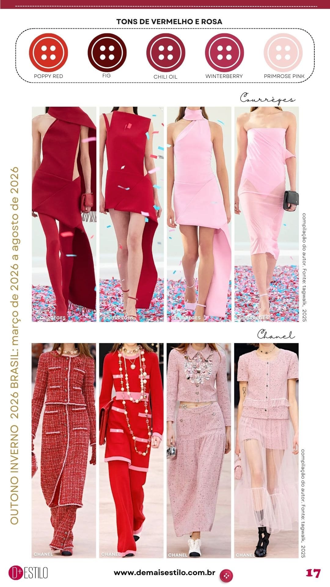 Os Tons de Vermelho e Rosa para Outono Inverno 2026 Brasil, é o primeiro post da série “As Cores do Agora”, e na minha opinião, serão os protagonistas da temporada.